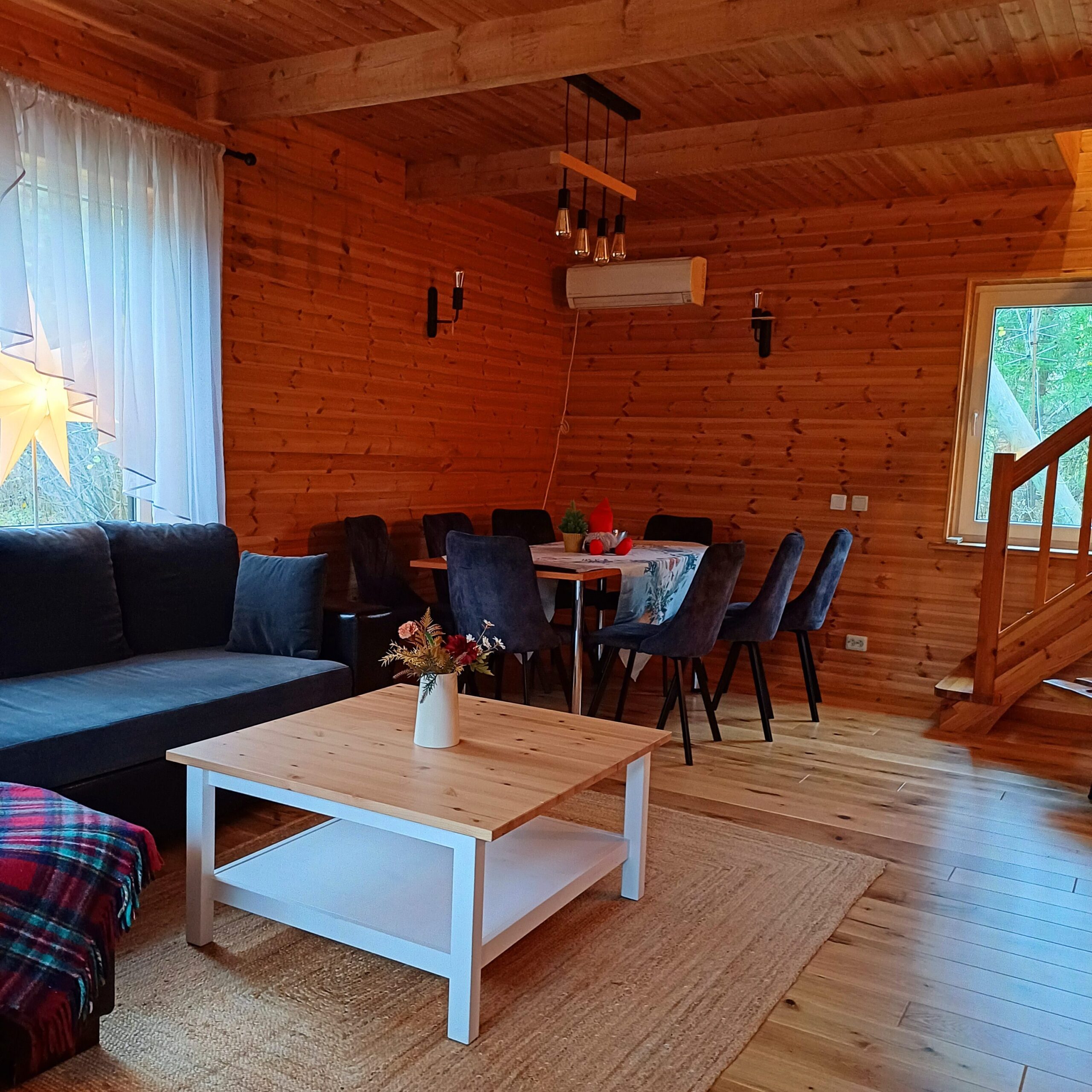 Saunamaja mahutab kuni 10 inimest ja on ideaalne peredele või väiksematele seltskondadele. Majas on 4 tuba laia voodiga, elutoas lahtikäiv diivan ning lisa magamiskohti näiteks lastele trepihallis. Saunamaja ümbritseb looduslik maastik suurte mändidega.